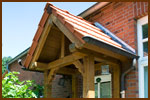 Haustürvorbau Eichenfachwerk mit geschweiften Kopfbändern Durch einen Klick auf das Bild sehen Sie mehr von diesem Projekt. |